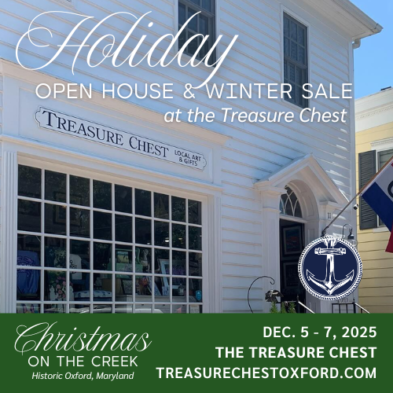While in Oxford, don’t miss The Treasure Chest’s Annual Holiday Open House and Winter Sale, taking place December 5 -7.