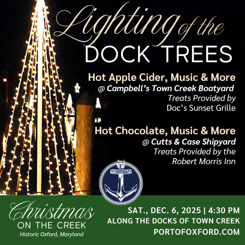 Oxford, Maryland’s waterfront will sparkle once again as the town welcomes guests to Christmas on the Creek, a month-long celebration of lights, music, food, and family activities beginning Saturday, December 5, 2025, and continuing through Saturday, January 10, 2026.
